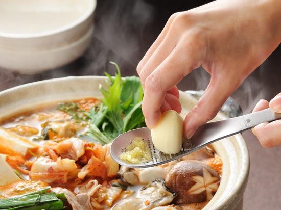 體積小巧精緻卻功能強大的器具,加上磨泥器的湯匙具多功能便利性,磨出需要的量後又能直接攪拌。獨特的開齒技術,湯匙上分佈著傾斜60度的鋒利小銳刀,研磨時不易打滑卻又很細緻,磨薑或蘿蔔泥都能輕鬆不費力。